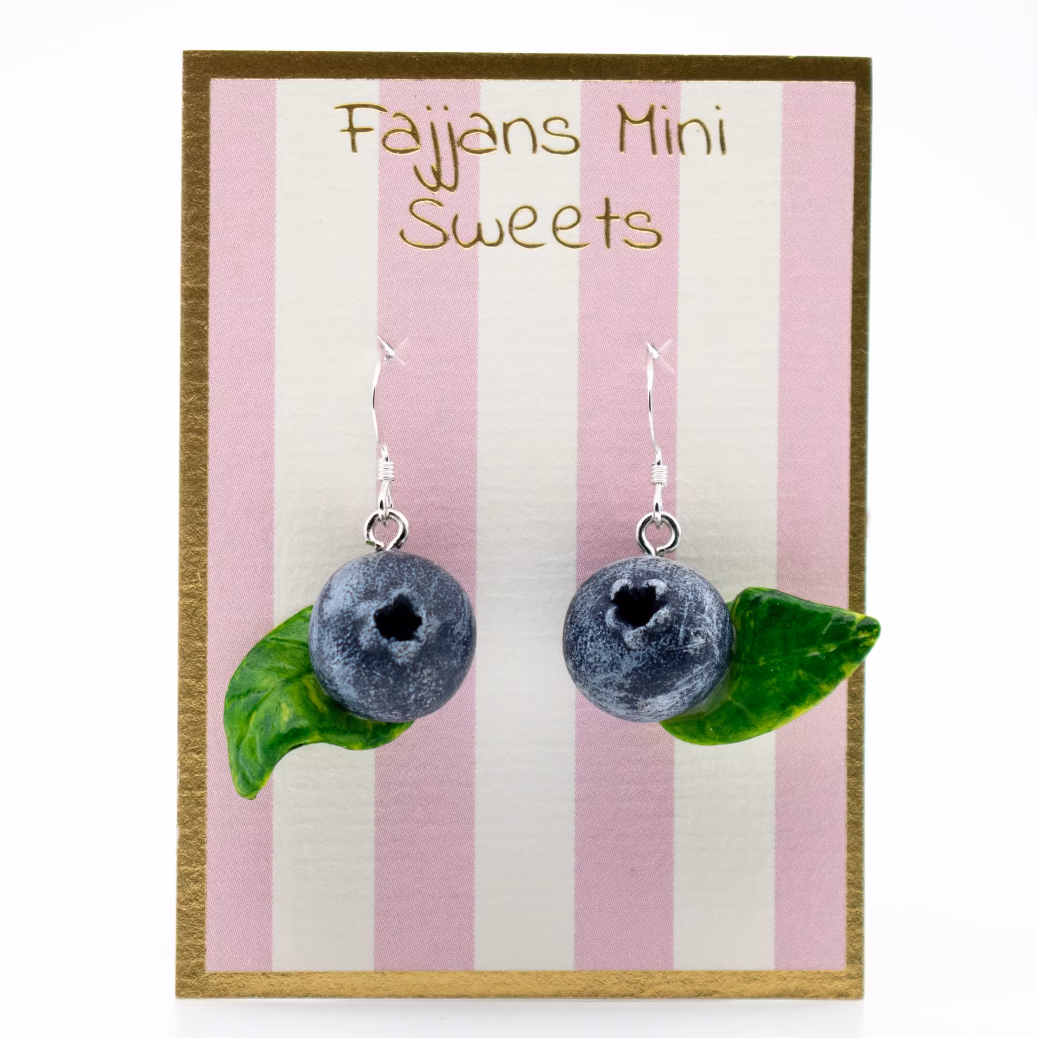 Ett par söta örhängen i form av blåbär med blad. Eftersom varje par örhänge är unika kan de du får skilja sig lite från det paret på bilderna.