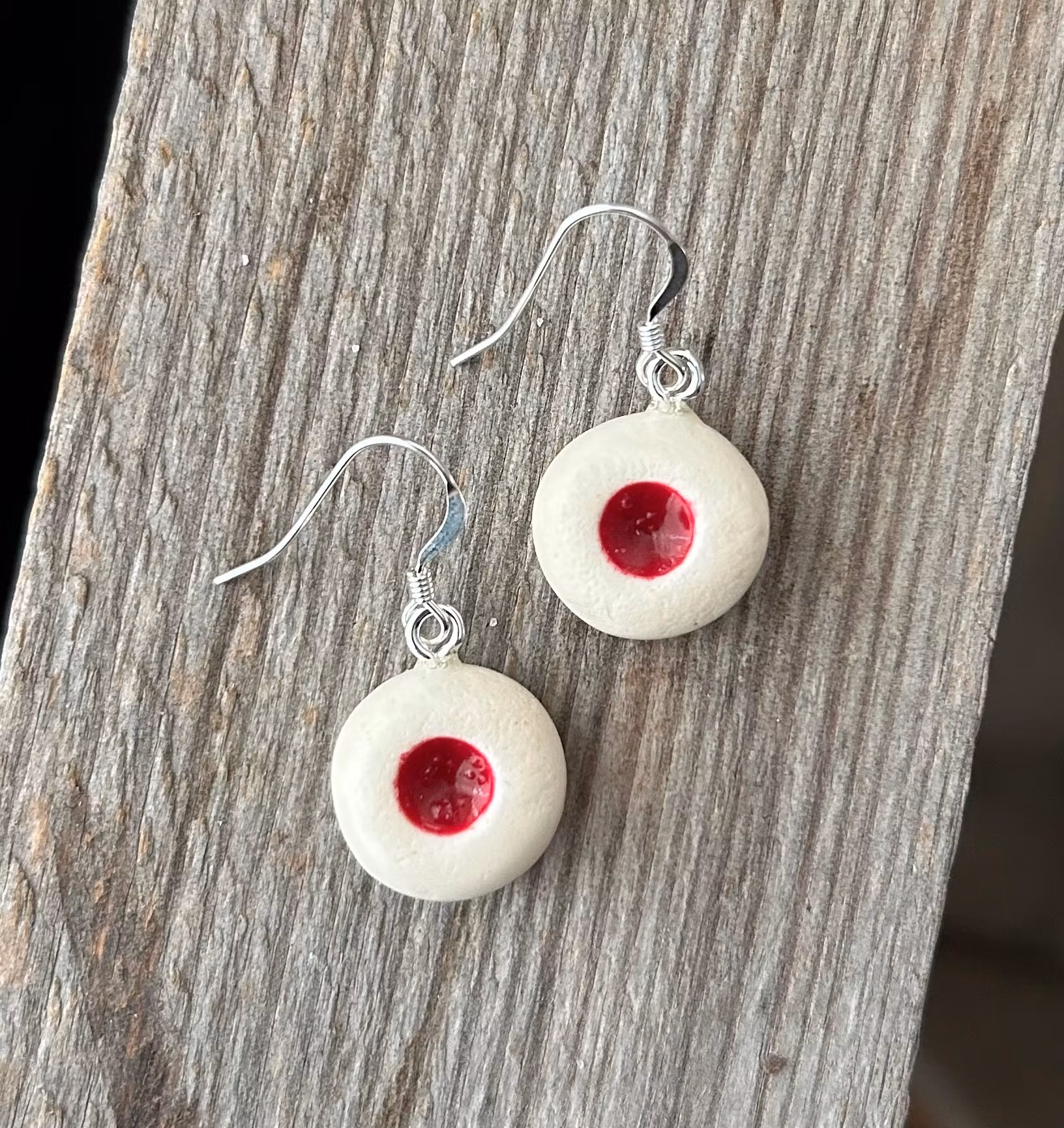 Ett par söta örhängen i form av hallongrottor. Eftersom varje par örhänge är unika kan de du får skilja sig lite från det paret på bilderna.