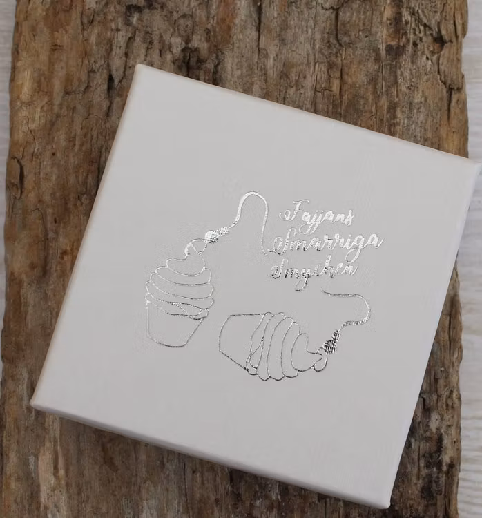 Gift Box $1.58 The product is unfortunately out of stock. :( P> Article Number: 16 Share Information Reviews Give away your gift in a pretty "Fajjans Smarriga Smycken" gift box with metallic silver print (jewelry not included).White carton with black-white foam.65 x 65 x 25 mm (59 x 59 x 15 mm)Price is including VAT